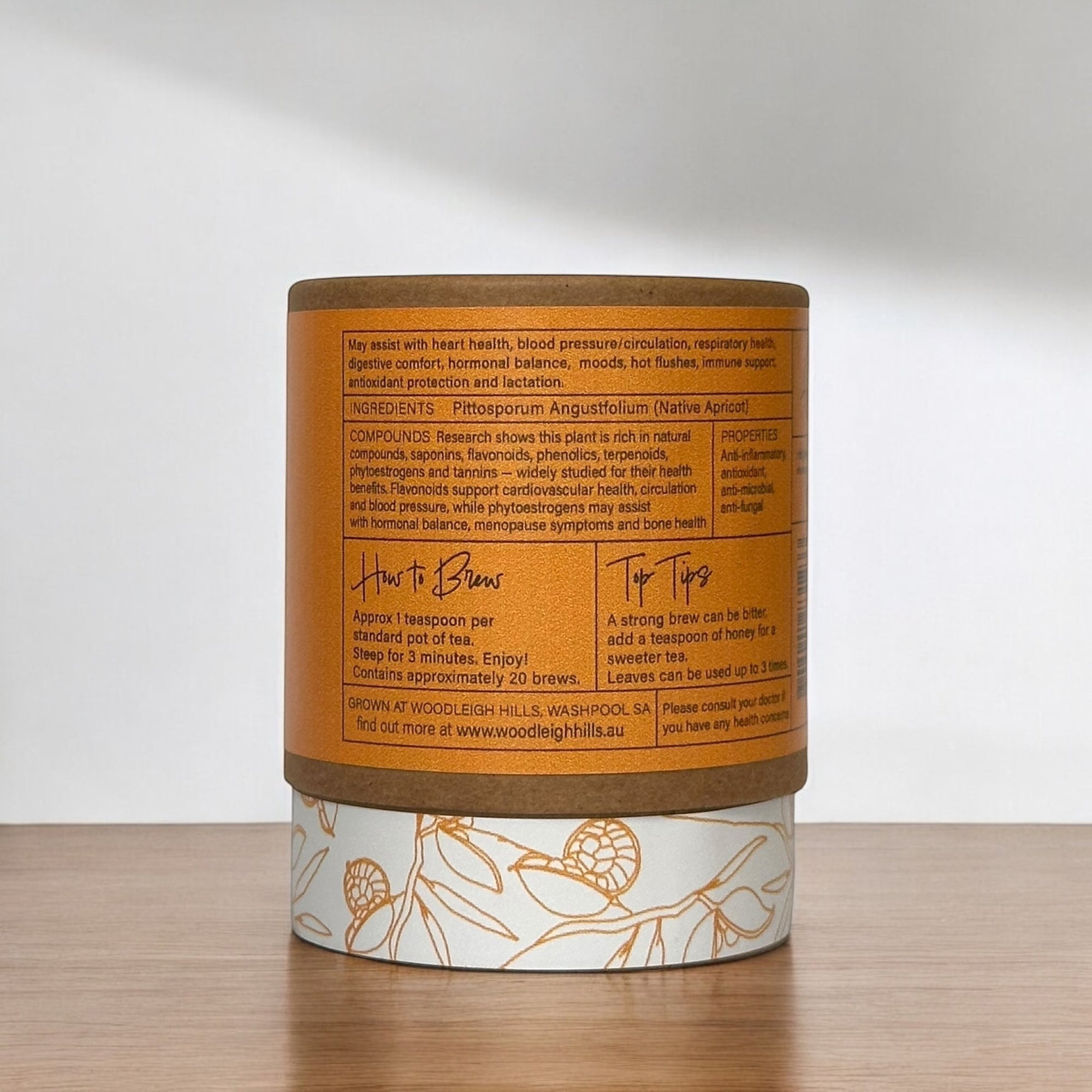 Research has identified phenolics, flavonoids, saponins and terpenes in Native Apricot leaves, which have demonstrated antioxidant, antimicrobial and hormone-modulating activity in laboratory studies. These findings support its traditional use and our choice of leaf for your daily brew.